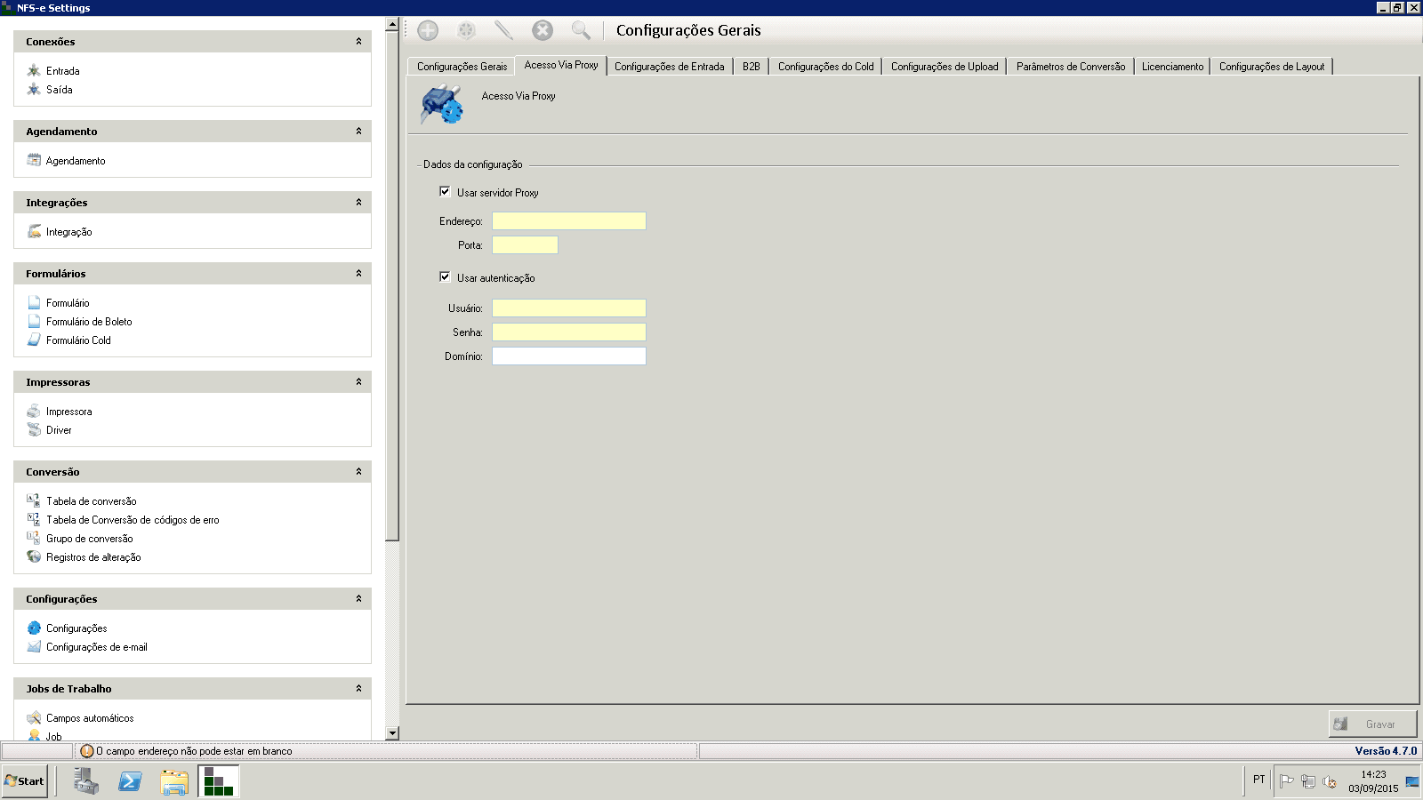 Passo 2: Clique na aba Acesso Via Proxy para configurar o endereço Proxy, caso o mesmo exista em sua rede.