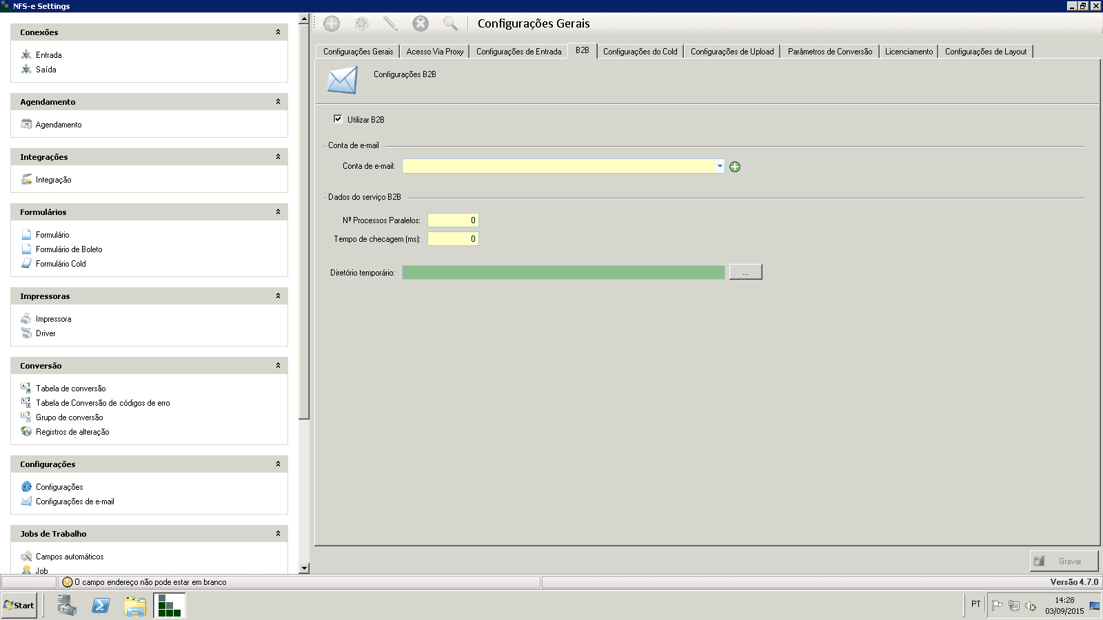 Para configurar o serviço de B2B siga as instruções descritas no link Configurações de e-mail.