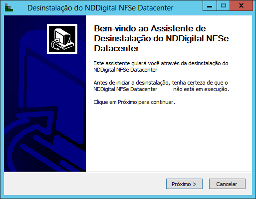 Para desinstalar a solução, ir em: menu Iniciar\Configurações\Painel de Controle\Adicionar ou Remover Programas\NDDigital NFSe DataCenter, selecione a opção Alterar/Remover. Para prosseguir siga os passos abaixo: Passo 1: Tela inicial: Tela inicial de desinstalação do NDDigital NFS-e DataCenter. Para prosseguir clique no botão Próximo. Passo 2: Progresso da desinstalação: Serão apresentados os componentes que serão desinstalados caso deseje removê-los no processo de desinstalação do NDDigital NFSe DataCenter, marcar as opções desejadas e clicar em Desistalar. Passo 3: Progresso da desinstalação: Será apresentado o progresso da desinstalação do NDDigital NFSe DataCenter. Passo 4: Desinstalação concluída: A tela abaixo mostra que a desinstalação foi concluída com sucesso. Clique em Terminar. |