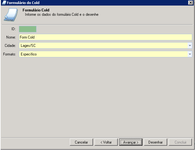 Passo 9: Após fechar a tela de criação de formulário Cold a tela utilizada para informar o nome e a cidade do formulário Cold é exibida novamente. Note que o botão Avançar agora está habilitado, clique no mesmo para prosseguir o cadastro.