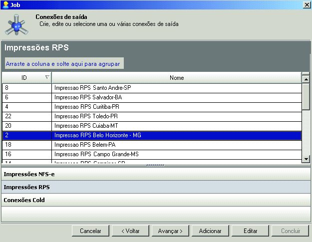 O Job de Saída é utilizado para realizar o envio RPS ao WEb Service da prefeitura.