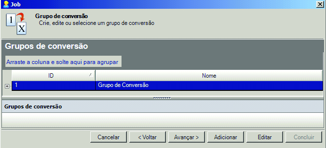 Passo 23: Marque a opção Utilizar grupos de Conversão se o job a ser cadastrado for utilizar esta funcionalidade.