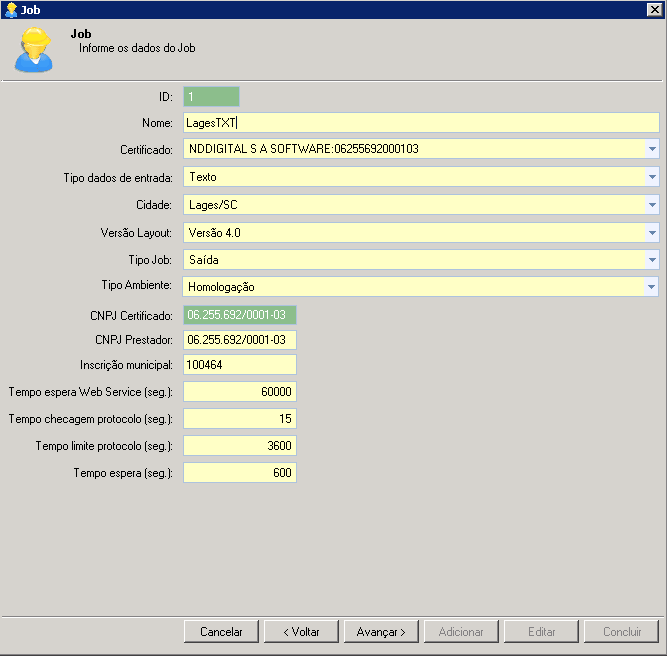 Passo 9: No campo CNPJ PRESTADOR informe o CNPJ da empresa Prestadora de Serviços que está sendo cadastrada no Job.
