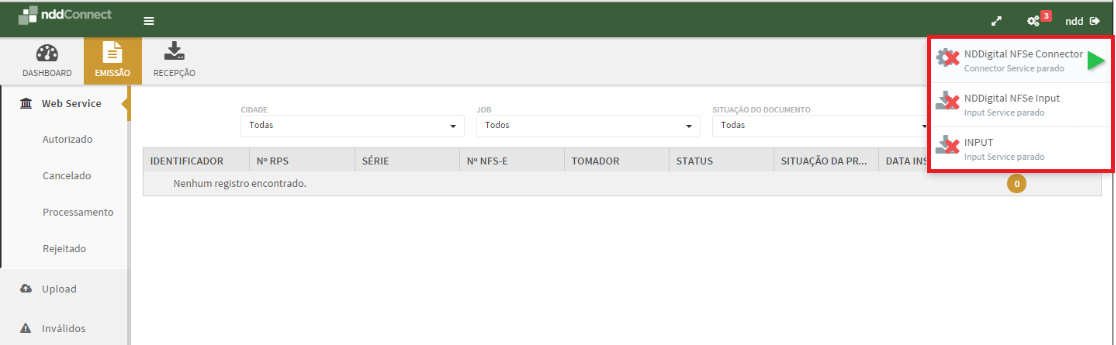 •Para iniciar o serviço do "Input e Connector", clique no ícone em destaque na imagem abaixo.