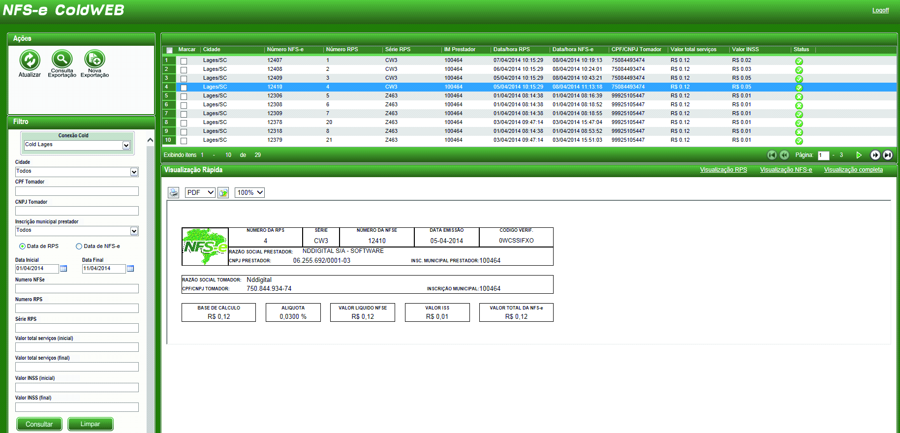 Para efetuar uma visualização rápida basta clicar em cima de um documento listado no Grid dos resultados da pesquisa efetuada, a visualização rápida do documento selecionado será exibida logo abaixo dos resultados da pesquisa. Veja na imagem abaixo um resultado de uma pesquisa com a visualização rápida. Tela de visualização rápida |
