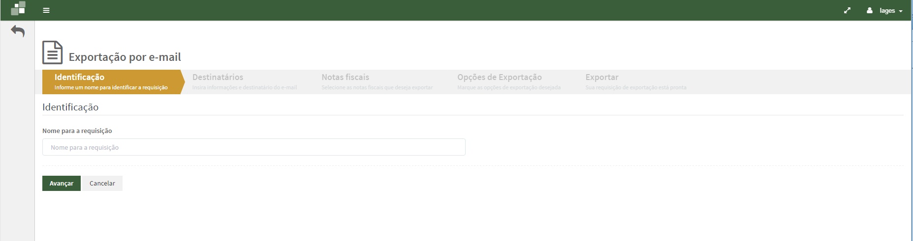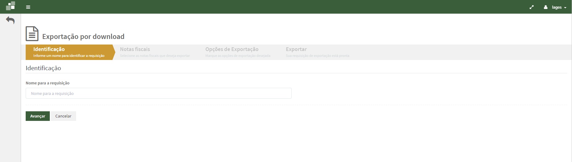 Será apresentado aba Identificação, informe um nome desejado para a requisição em seguida clique no botão Avançar.