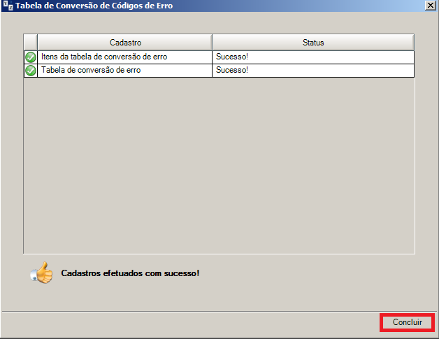 Passo 8: A tela da Tabela de conversão de código de erro será exibida, clique em Concluir para finalizar.