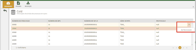 Na tela que será apresentada selecione um registro no grid e clique em (...), em seguida clique em Reprocessar.