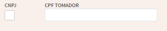 A opção CNPJ localizada no lado esquerdo do filtro CPF Tomador, quando marcada, permite ao usuário pesquisar o CNPJ do Tomador de serviço.