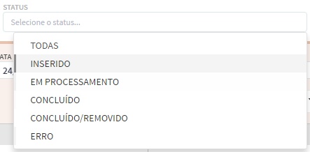 •Concluído : Mostra registros que foram processados com sucesso e estão disponíveis para download.