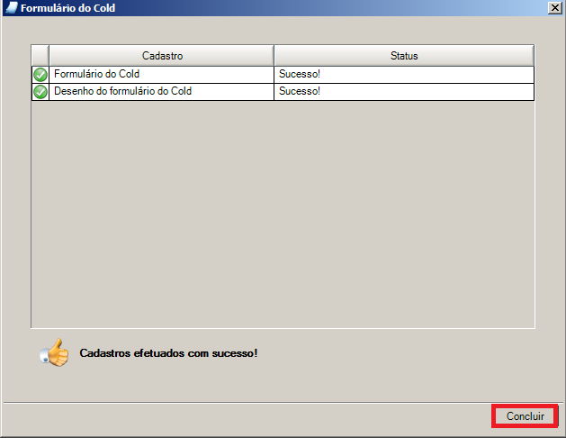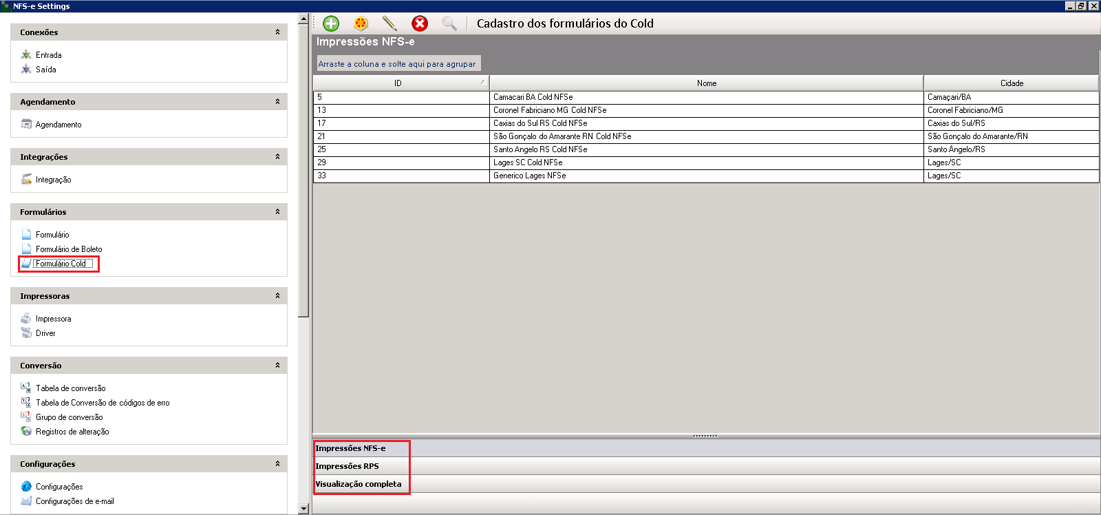 Observação: Para realizar o cadastro dos formulários Cold de Impressão NFS-e, Impressão RPS, Visualização completa siga os passos acima descritos. |