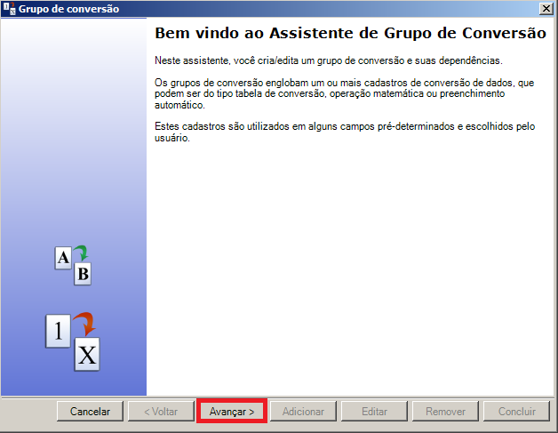 Tela Assistente de Grupo de Conversão