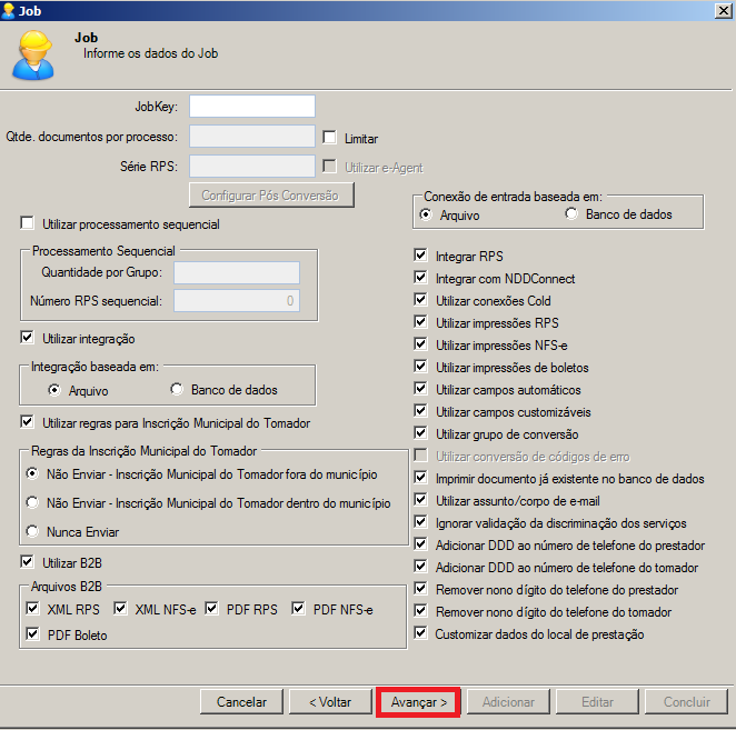 V. Marque a opção Utilizar B2B se o job a ser cadastrado for utilizar esta funcionalidade.