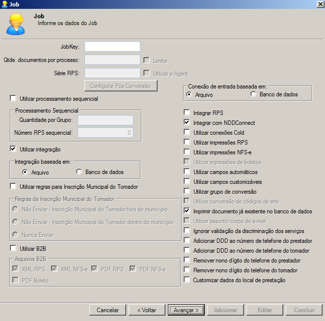 S.Marque a opção Utilizar grupos de Conversão se o job a ser cadastrado for utilizar esta funcionalidade.