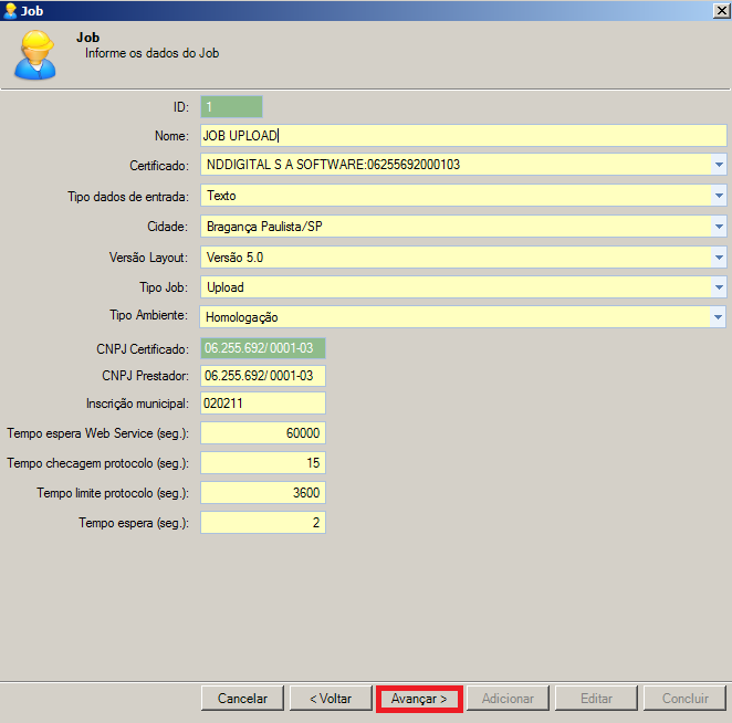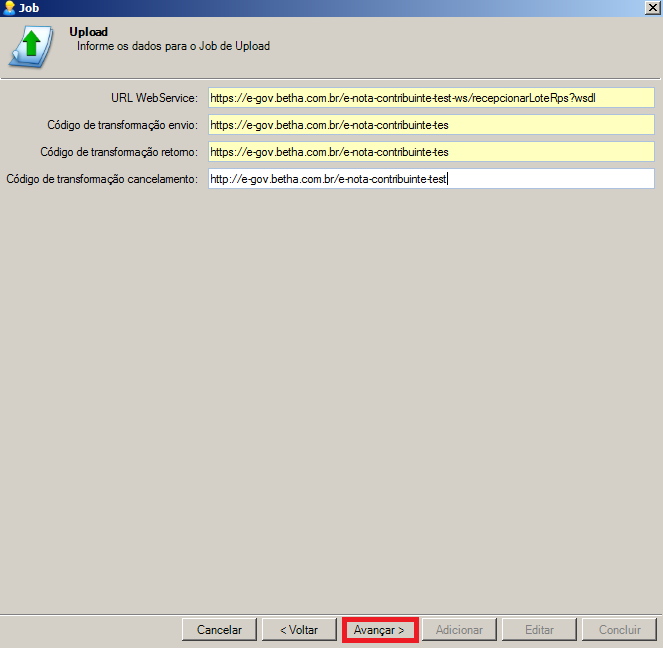 O Job de Upload é utilizado para realizar o envio RPS ao Web Service da prefeitura.