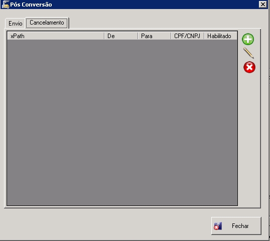 (adicionar), será apresentada a tela de configuração DE/PARA.