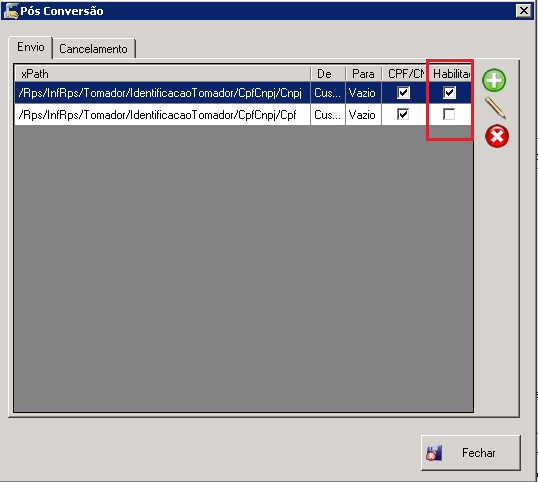 •Ao realizar as configurações do pós conversão e a caixa Habilitar estiver desmarcada não será realizada a conversão do documento.