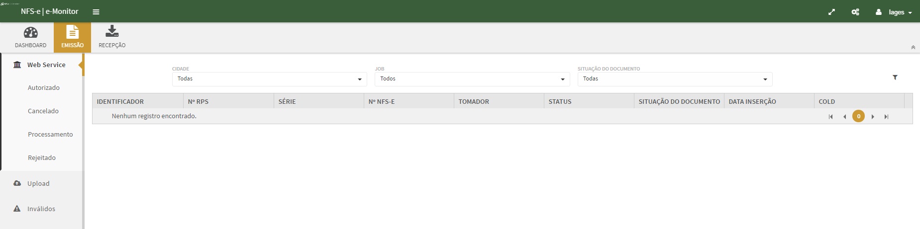 Acesse o portal e-Monitor com seu usuário e senha, será apresentado a tela inicial: