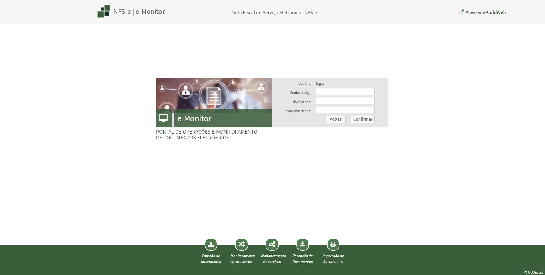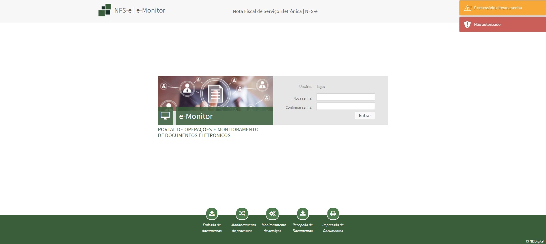 Trocar de senha através do portal NFS-e e-Monitor ao realizar o primeiro login |