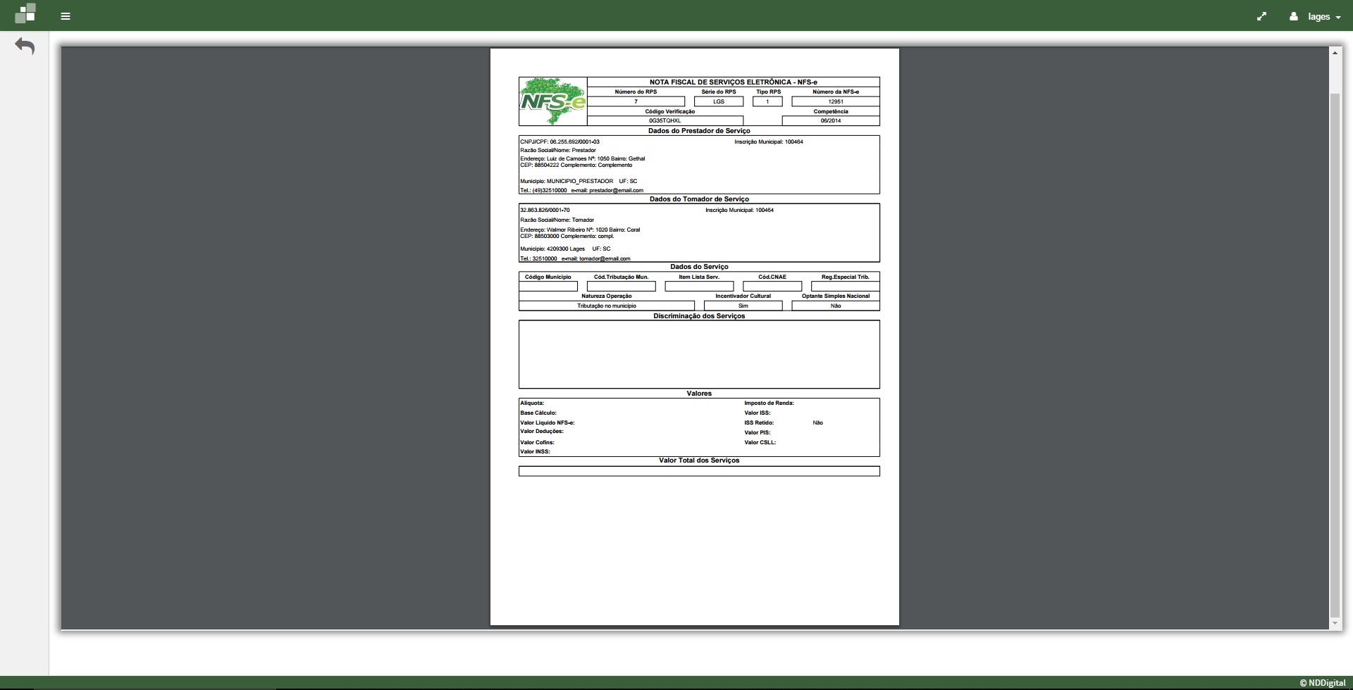 •Código de verificação da NFS-e: Informação do código de verificação que foi retornado da prefeitura.