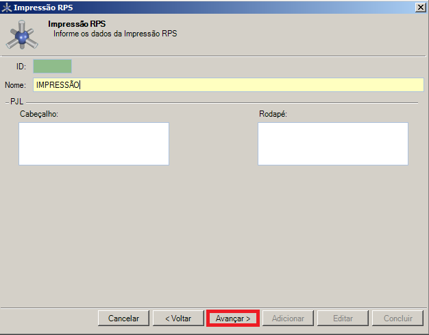 A.No campo Nome, digite o nome utilizado para identificar a Impressão RPS.