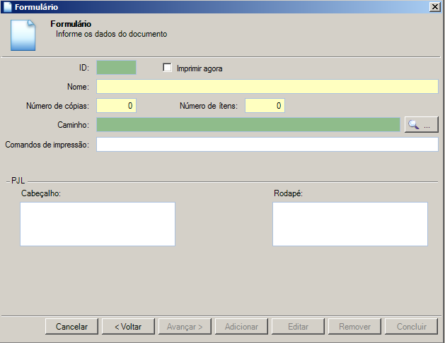 F.O campo Cabeçalho é utilizado para informar os comandos PJL da impressora para cabeçalho de página.