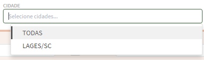O filtro Cidade é utilizado para realizar uma pesquisa específica pela cidade que se deseja. Será apresentada as cidades no portal e-ColdWeb conforme estiver as configurações no Settings com suas respectivas permissões.
