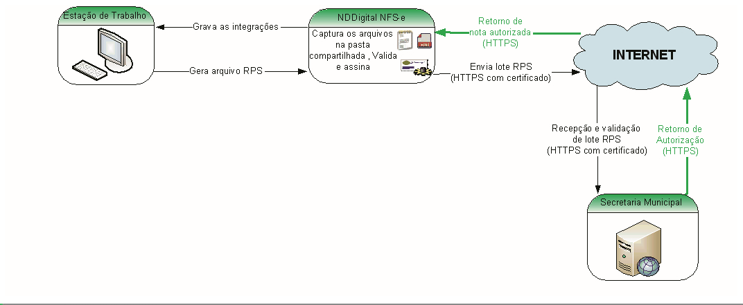 Abaixo o gráfico demonstrando o funcionamento básico do aplicativo NDDigital NFS-e: