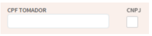 A opção CNPJ localizada no lado esquerdo do filtro CPF Tomador, quando marcada, permite ao usuário pesquisar o CNPJ do Tomador de serviço.