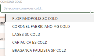 O Filtro Conexão Cold é utilizado para selecionar a Conexão Cold onde será feito as pesquisas dos documentos. Para localizar a conexões desejadas pode ser digitado algum caracter, conforme for digitando vai aparecendo somente os filtros que contém os caracteres digitados.
