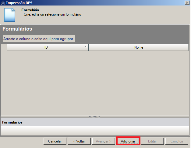 Passo 4: Na tela Formulários, clique no botão Adicionar para abrir a tela do Assistente de Formulário.