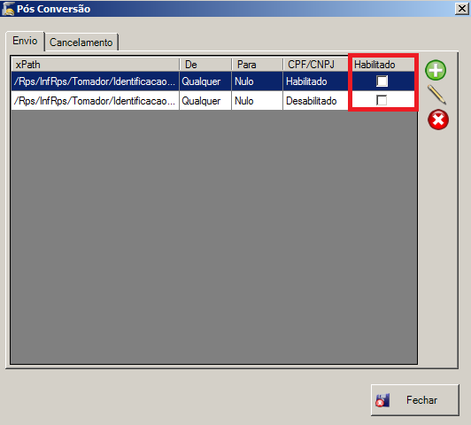 •Ao realizar as configurações do pós conversão e a caixa Habilitar estiver desmarcada não será realizada a conversão do documento.