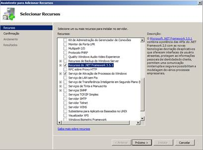 Habilitar a seguinte opção: Recursos do .NET Framework 3.5.1