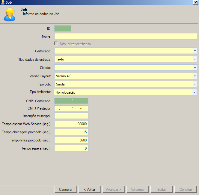 •Homologação, Jobs que emitem para o ambiente de Homologação do Web Service.