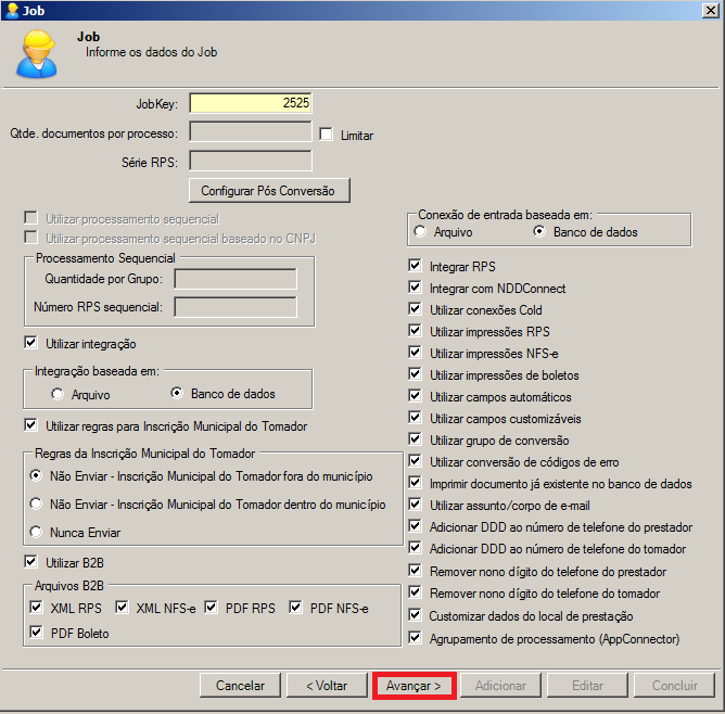 M.Marque a opção Utilizar B2B se o job a ser cadastrado for utilizar esta funcionalidade.