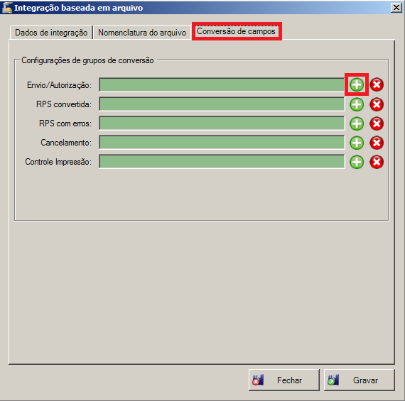 Passo 1: Na aba Conversão de campos, permite configurar uma grupo de conversão para integração que é retorno pelo web service do município. Desta forma a solução irá converter os valores retornados pela prefeitura para os valores esperados pelo ERP, permitindo devolver devolver ao ERP as informações esperadas pelo mesmo.