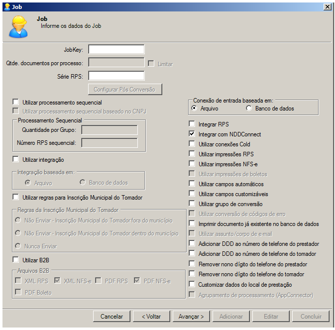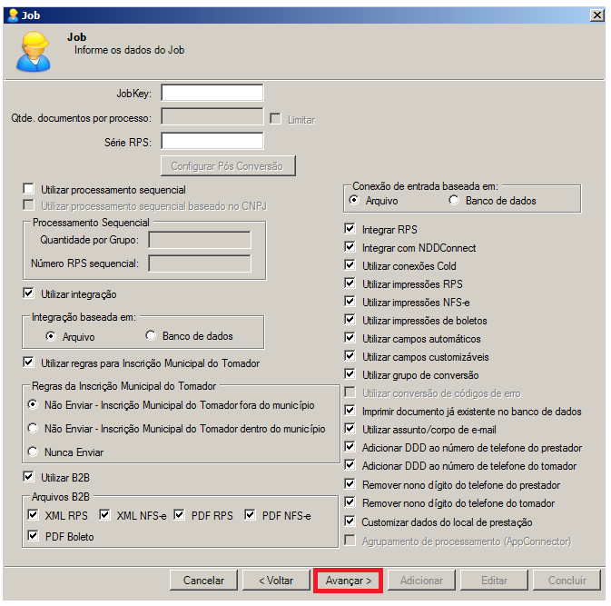 S. Marque a opção Utilizar B2B se o job a ser cadastrado for utilizar esta funcionalidade.