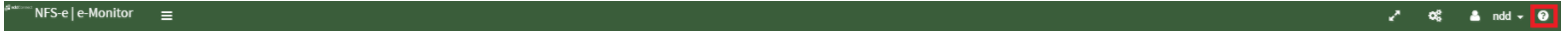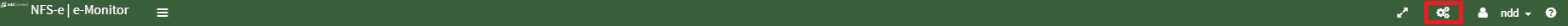 No cabeçalho do e-monitor é possível realizar algumas ações através dos ícones, como maximizar e minimizar a barra lateral esquerda, página modo tela cheia, iniciar o serviço do Input e Connector e fazer Logoff.