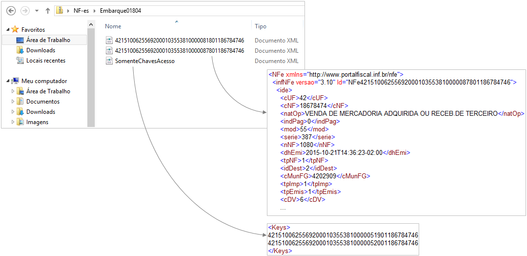 Ao realizar o download das NF-es é disponibilizado um arquivo compactado (.zip), contendo o XML das NF-es que fazem parte do embarque, quando o embarcador as enviou à Localização ou, um arquivo contendo as chaves das demais NF-es vinculadas ao embarque: