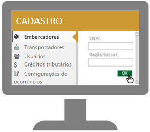 Através do menu CADASTRO, o usuário master do owner pode editar as informações dos embarcadores, criar e editar os parâmetros dos transportadores, dos usuários, das ocorrências e do crédito de imposto, para ajustar as regras conforme as operações.
