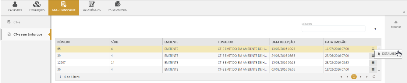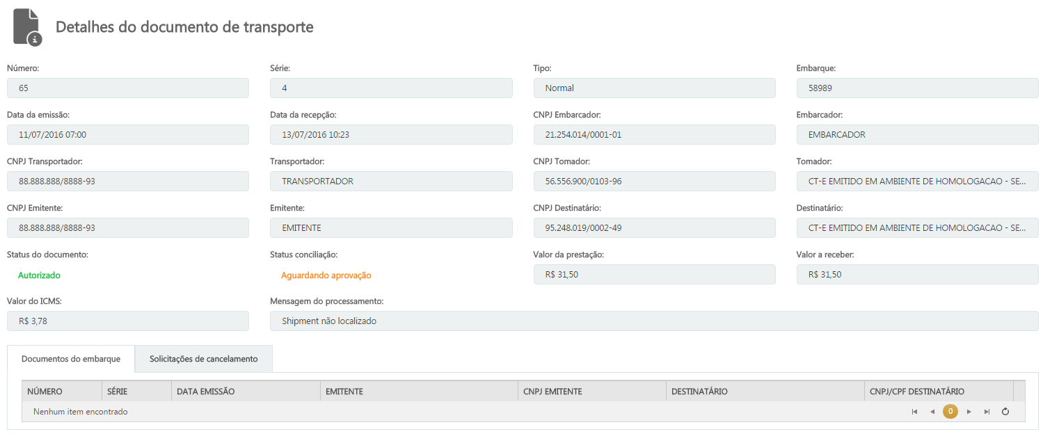 Observação:•O Embarcador pode apenas visualizar os detalhes do CT-e sem Embarque, para que dessa forma seja possível ter o controle de quais CT-es ainda não possuem Embarque vinculado, porém quem realiza o vínculo é o Transportador. |