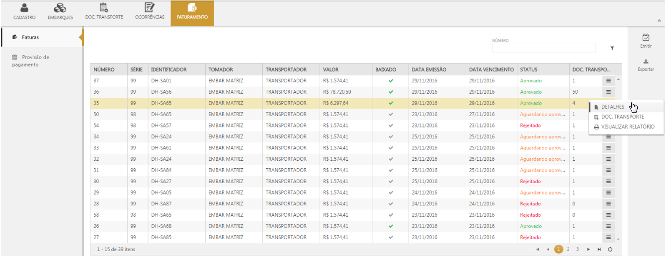 •Aprovado: Refere-se à fatura sem pendências, onde não é necessária nenhuma ação, pois a soma dos valores dos CT-es é equivalente ou inferior ao valor planejado para o embarque;