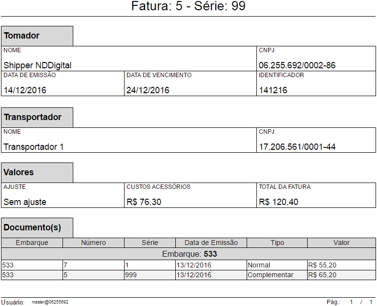Observação:•As faturas são disponibilizadas conforme a última alteração realizada, ou seja, a fatura editada por último será mostrada primeiro. |