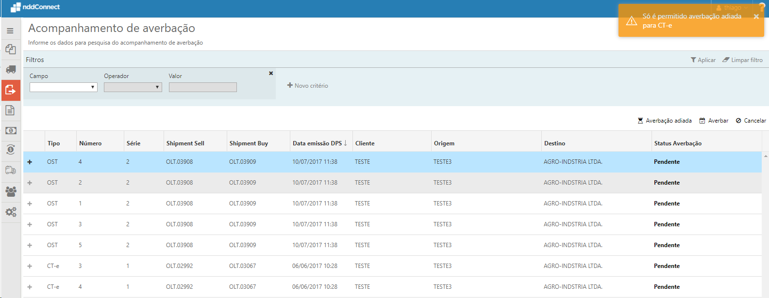 Na tela de acompanhamento de averbação não sera possível realizar a ação de averbação adiada nos documentos do tipo OST.