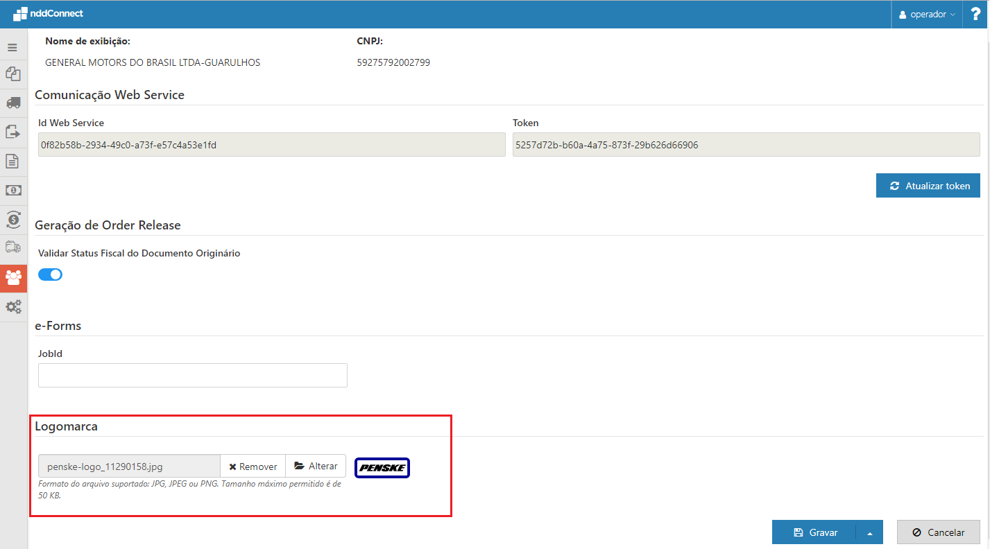 Incluído nas configurações do cliente o upload de logomarca, para ser incluso no relatório. Permite: •Adicionar; •Remover; •Editar.