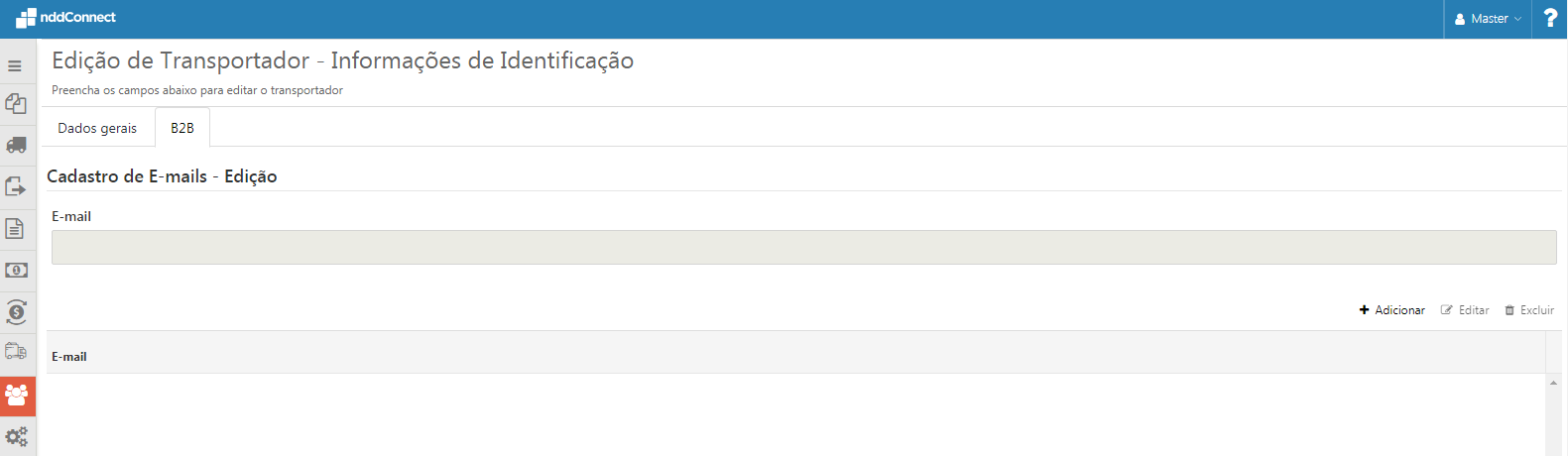 No item "B2B" é possível cadastrar o e-mail do respectivo transportador.