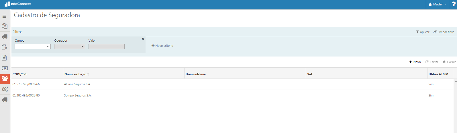 1.Incluída a nova funcionalidade de Cadastro de Seguradora, está será utilizada para averbação de DPS.