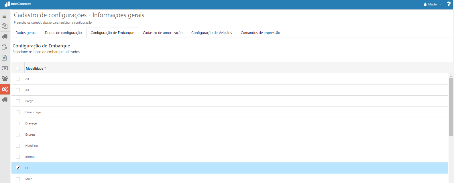 1.Adicionada configuração de Tipo de Embarque. Caso não seja configurado o tipo de embarque e recepcionado um Shipment este ficará inconsistente no momento da recepção.