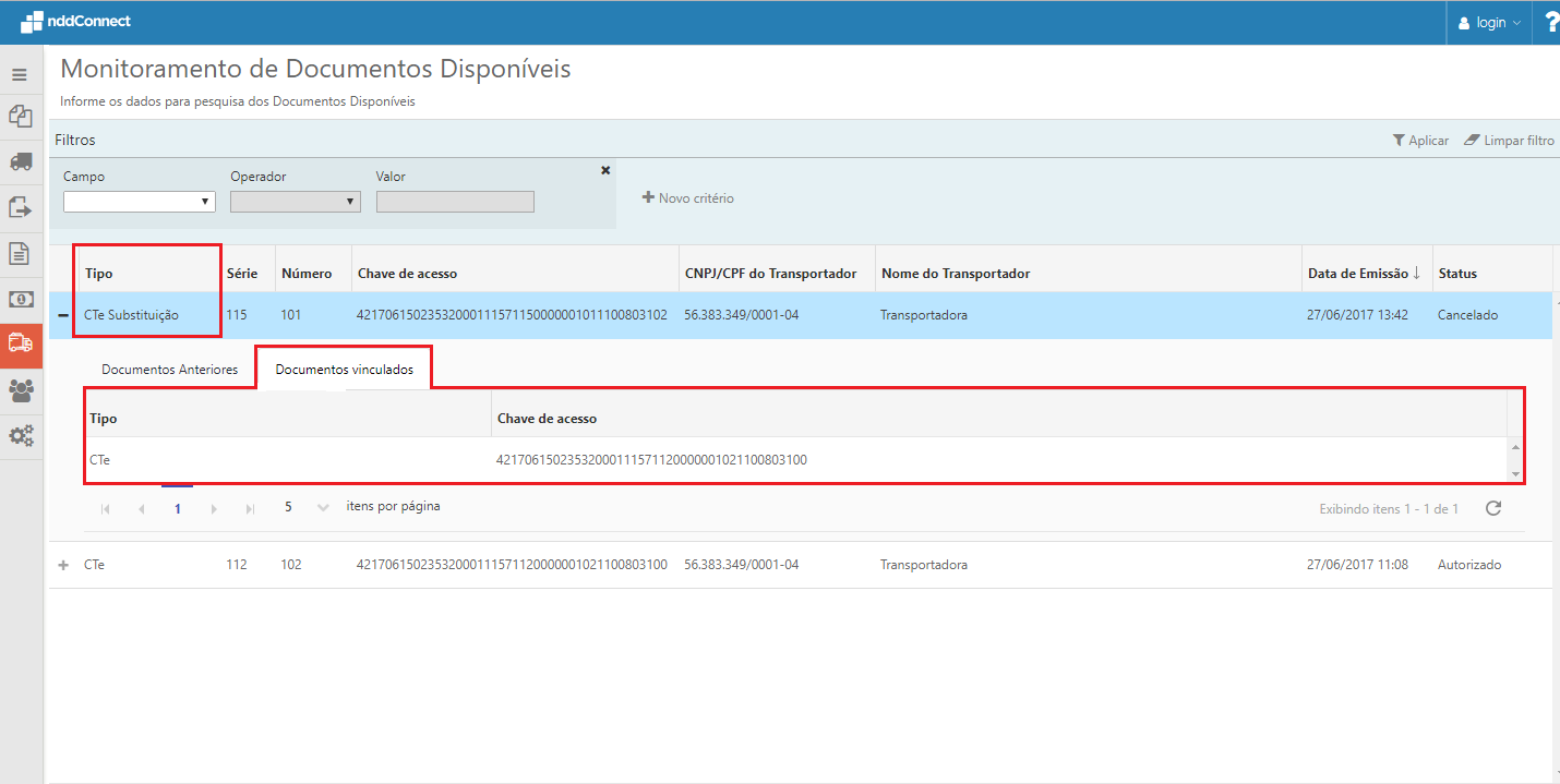 Alterado a exibição da coluna 'DPS' para Tipo onde poderá receber os valores: •CTe; •CTe Complementar; •CTe Anulação; •CTe Substituição; •CTe Inutilização; •CTe Cancelamento.