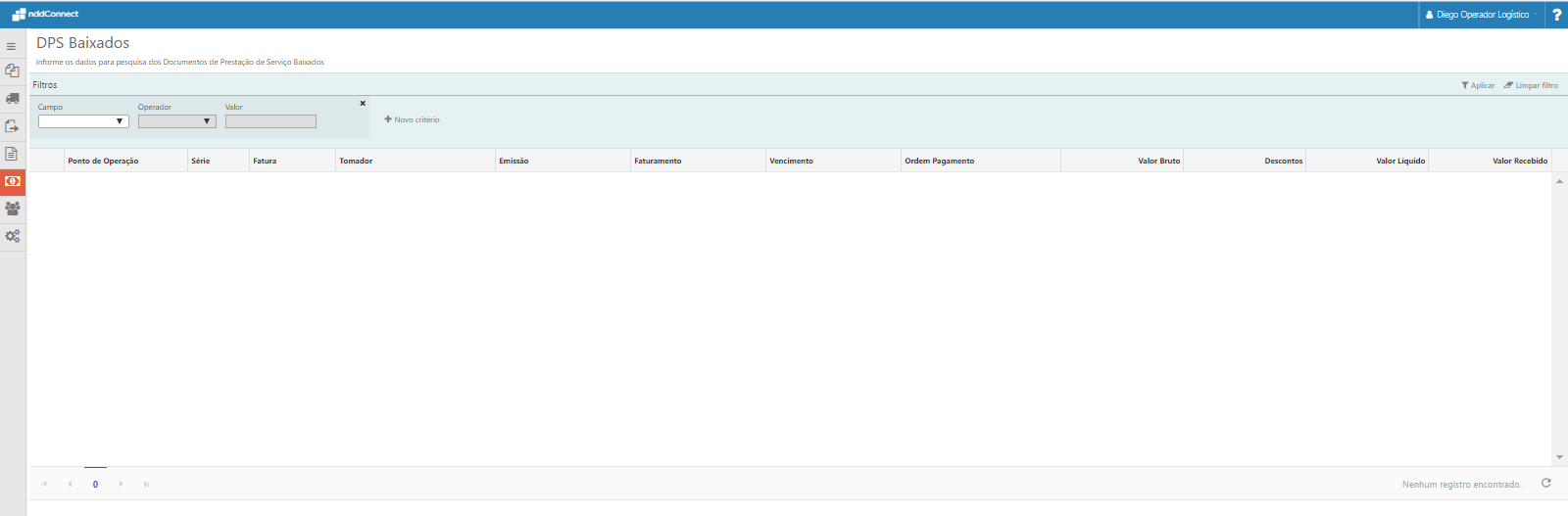 Navegação: Entrega 5 - Faturamento > Portal do Operador Logístico > Gestão de Faturamento > Faturamento